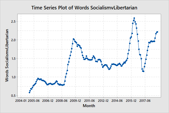 Interest in socialism has vastly increased relative to interest in libertarianism.